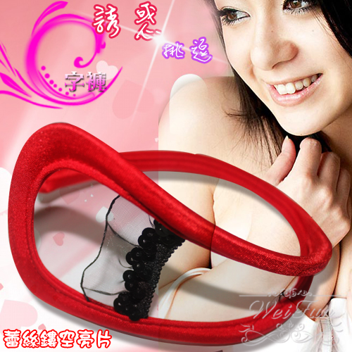 蕾絲鏤空亮片性感隱形C字褲 (紅)