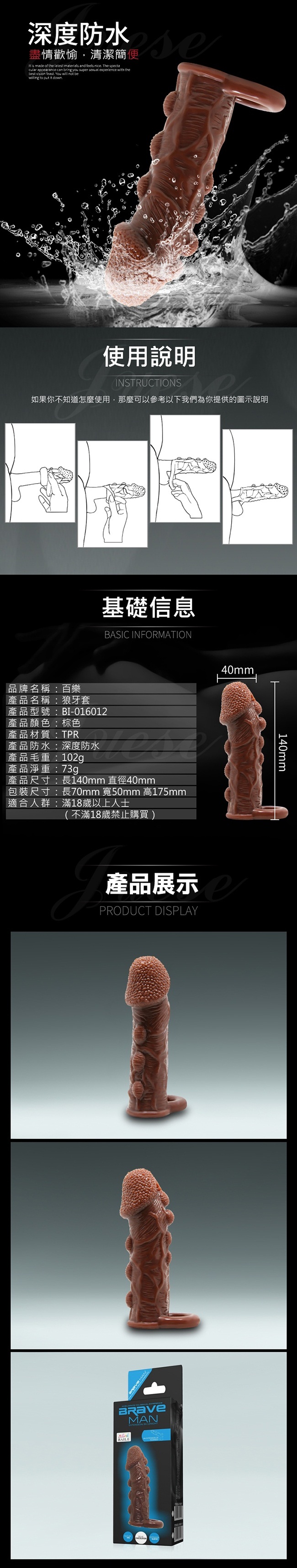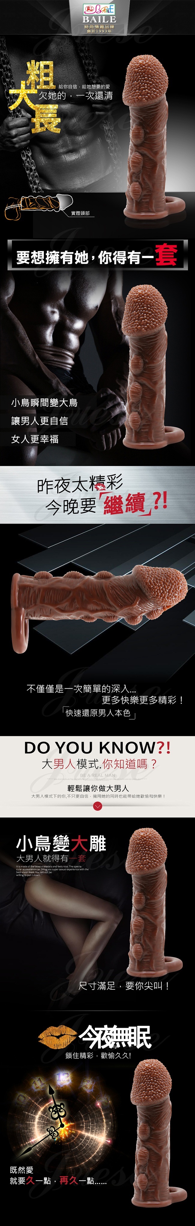 | BAILE-BRAVE MAN 陰莖套蛋老二加長套-棕色C
