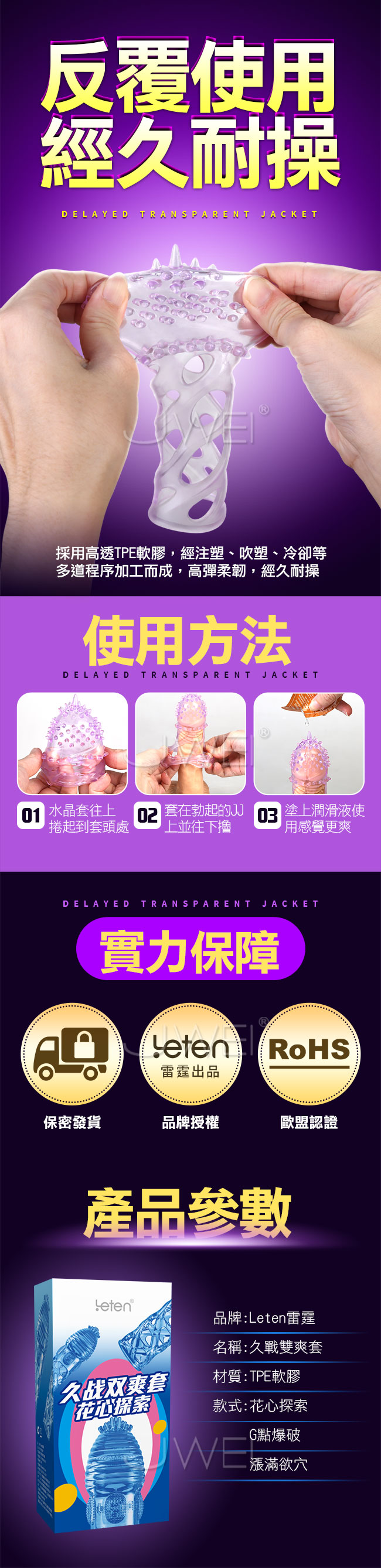 首頁>Leten‧久戰 雙爽加長鏤空水晶套-花心探索