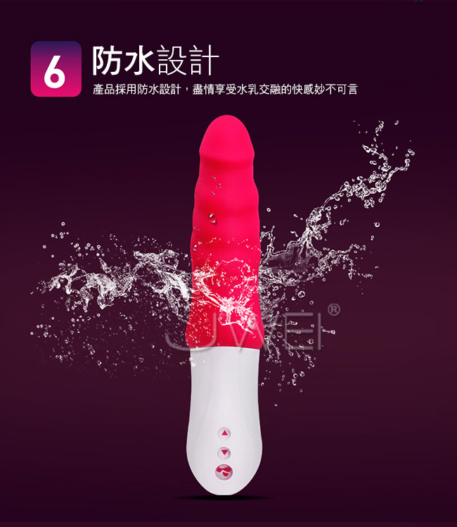 Mylover愛人強悍衝擊使您高潮不斷,有別於其它脈衝抽插,採直線式運動原理,更深層且強有力的抽插進程,滿足女性身心靈需求,讓您感受前所未有的G點高潮。總共7種頻率可調節,速度與激情的碰撞,讓每一種衝擊都讓你高潮迭起。棒身仿頭部設計,讓視覺與體驗更加逼真,猶如真男根直擊你的花芯。本產品採用防水設計,可盡情享受水乳交融的快感妙不可言。
