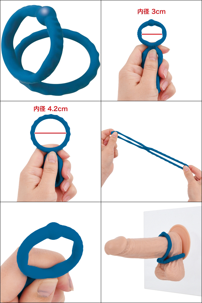 雙環設計除增強耐力更可提升硬挺度和射精能力。當球體位位於睾丸後方刺激著前列腺,帶來強烈的射精感,或置於肉棒側身刺激按摩,並透過不同的佩戴方式來取得不同的快感享受!