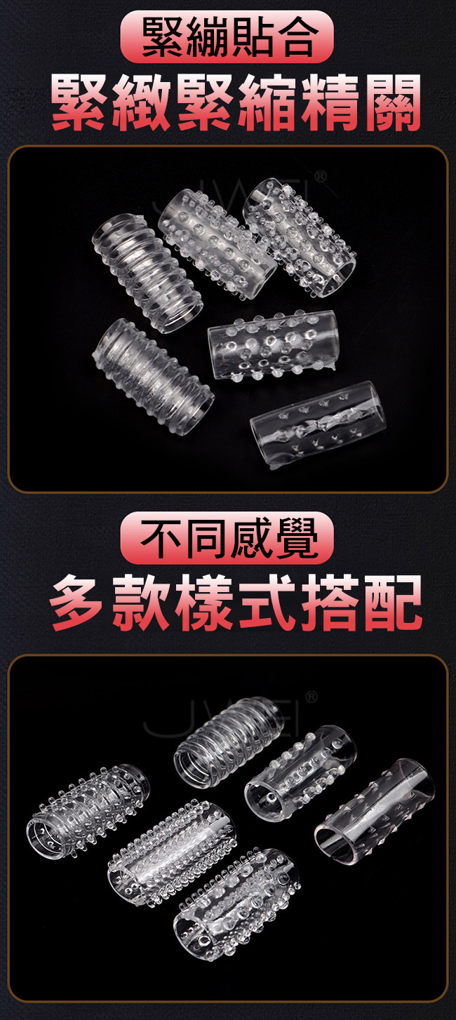 銀槍‧水晶透明激情鎖精半截套-6件套組