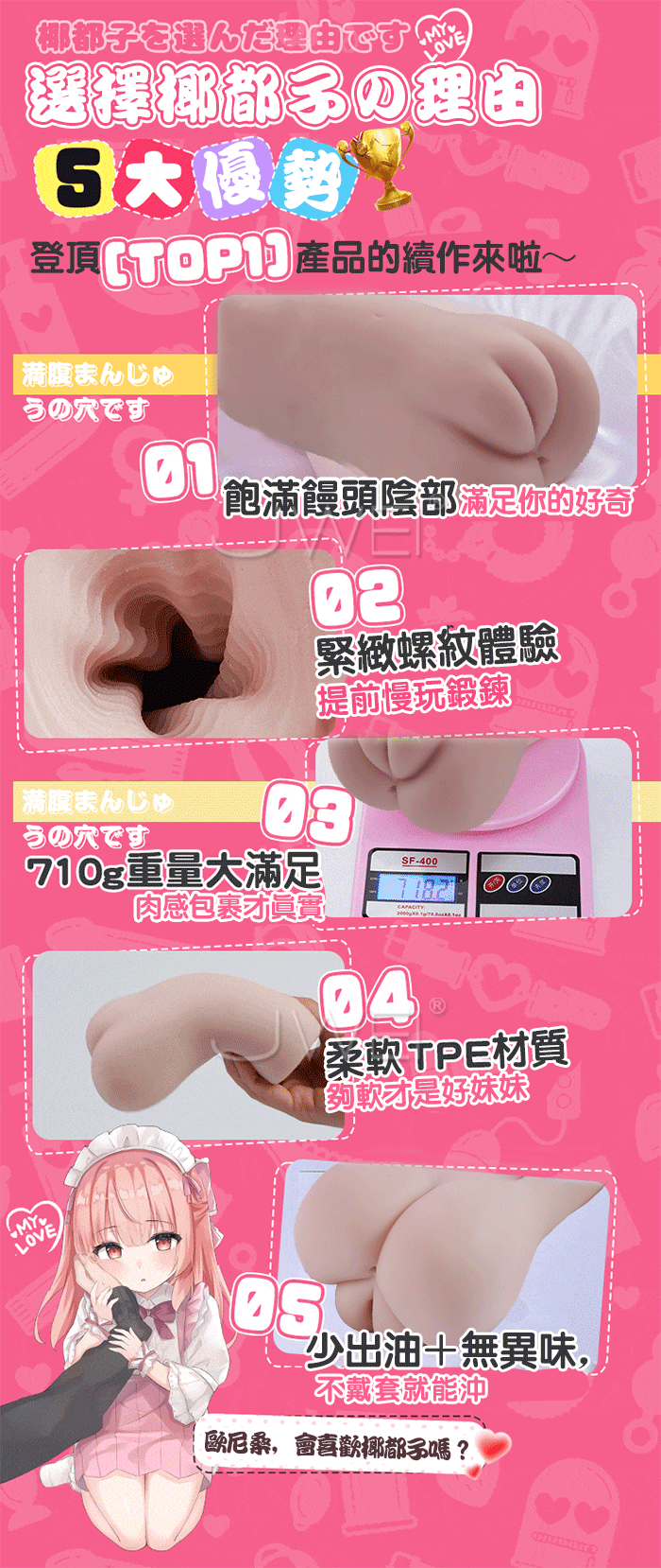 選擇椰都子就對了!超真實妹妹身材還原 超緊緻螺旋包裹通道設計