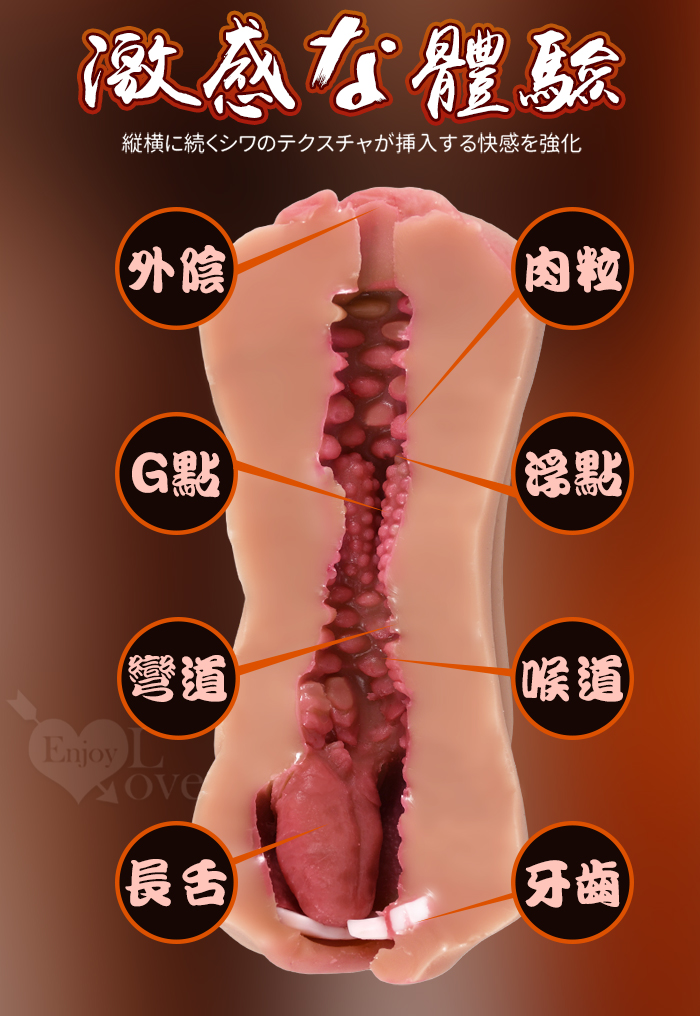 【七色香】極品女模 ‧ 口舌帶牙/陰部雙頭/雙層雙色 兩種快感體驗 色情褐色肌自慰器﹝附贈120ml潤滑液﹞