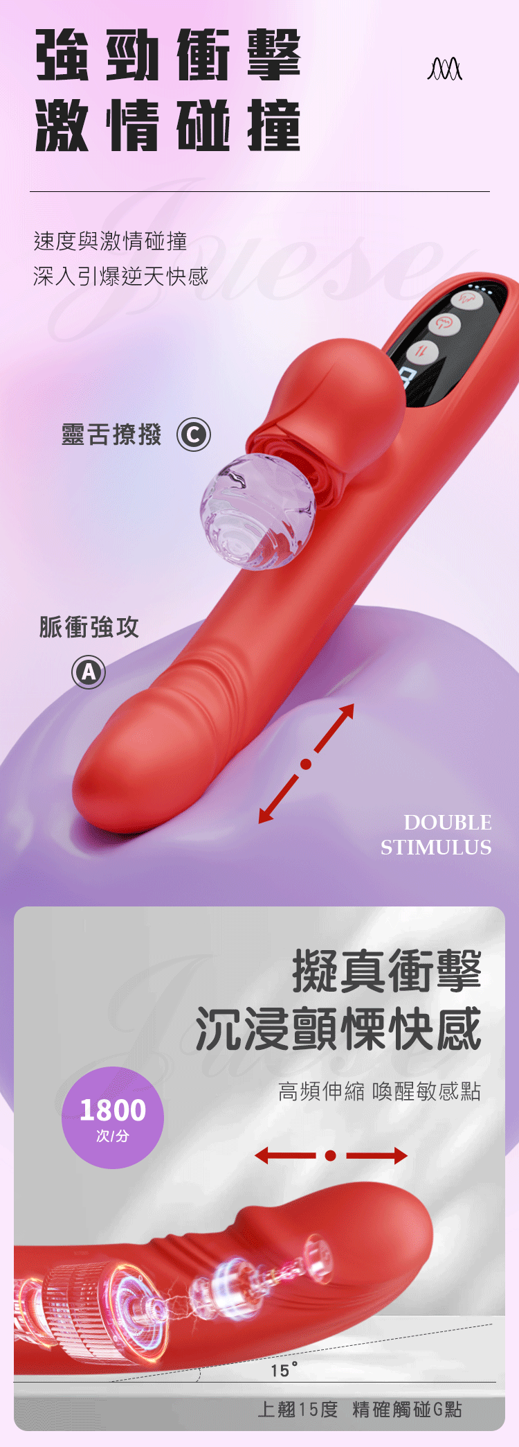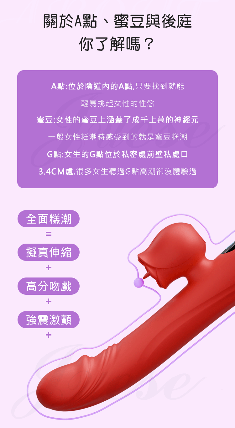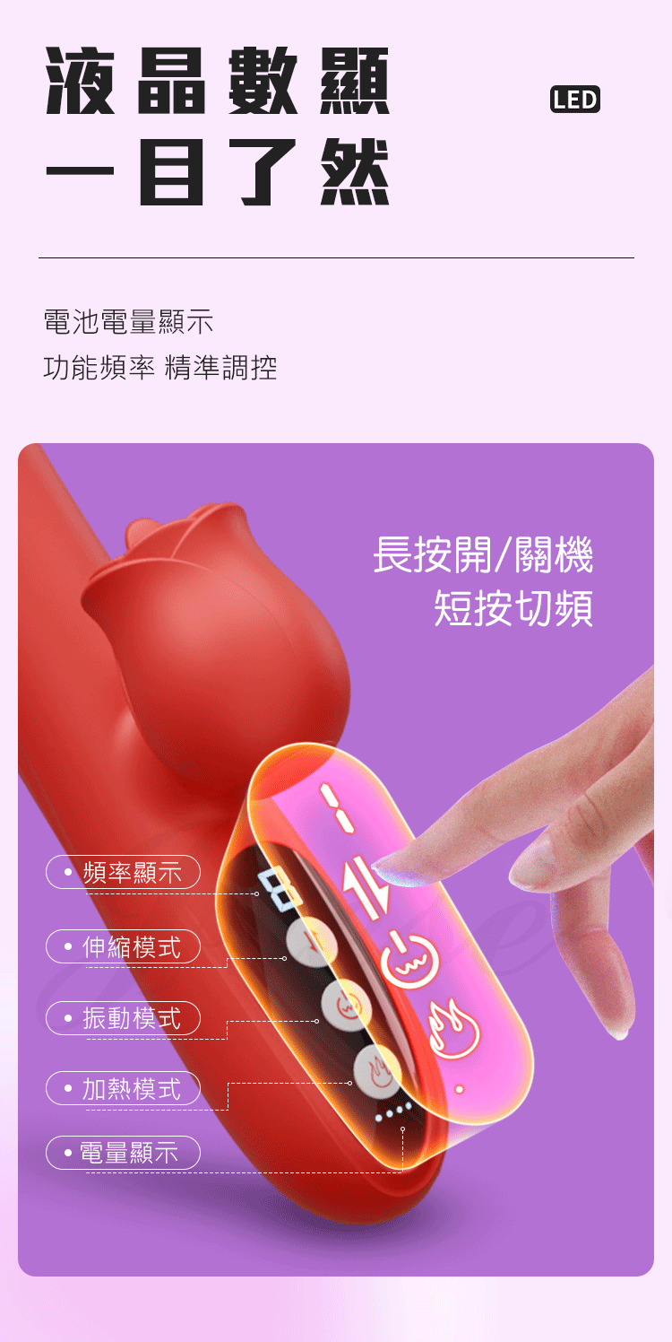 由內而外、反覆刺激,全自動液晶伸縮棒,C點舌舔+G點劇震,比女人更懂女人的G點高手。