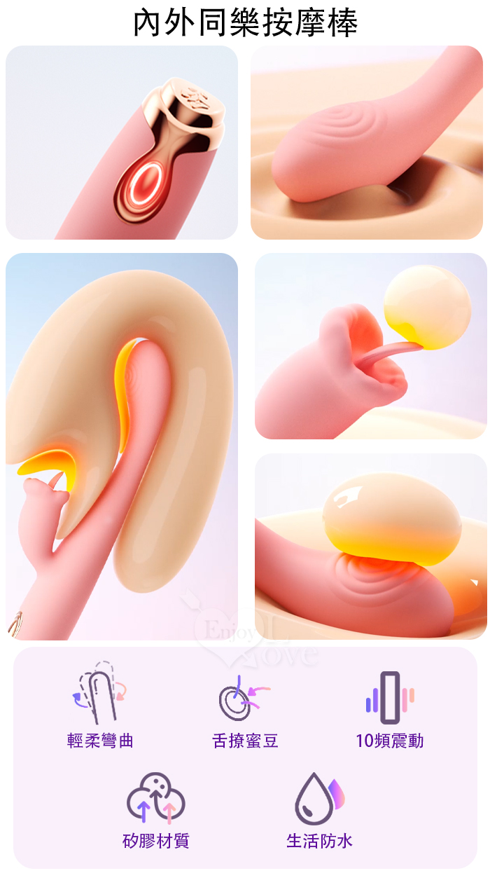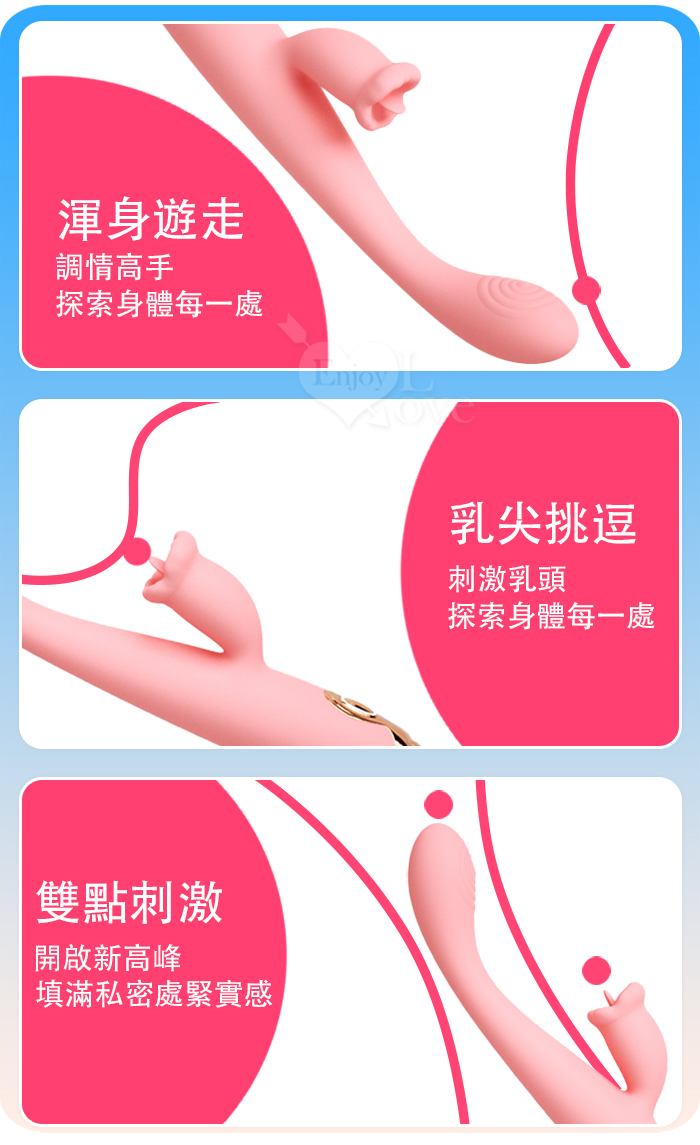 | ROSELEX 勞樂斯 ‧ 潮趣 內外同樂雙刺激點按摩棒﹝舌撩刺激+舒適矽膠+USB充電﹞