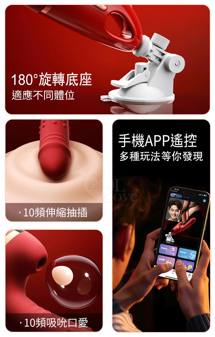 ROSELEX 勞樂斯 ‧ 安吉拉 10x10頻全自動伸縮+吸吮吸盤炮機 - 可手機APP遠程遙控﹝紅﹞