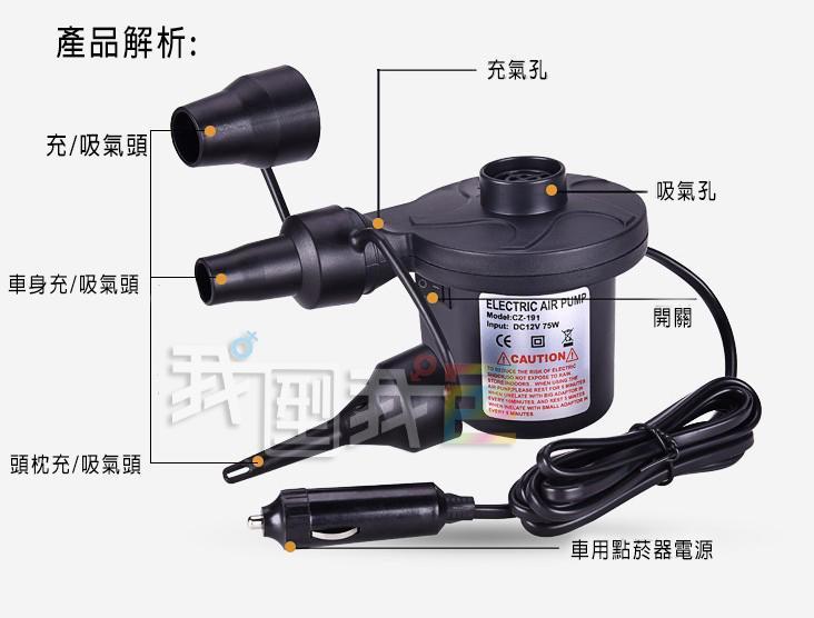 | 車用12v打氣筒 充氣+抽氣幫浦 附三頭電動充氣泵電泵抽吸水泳池圈器具